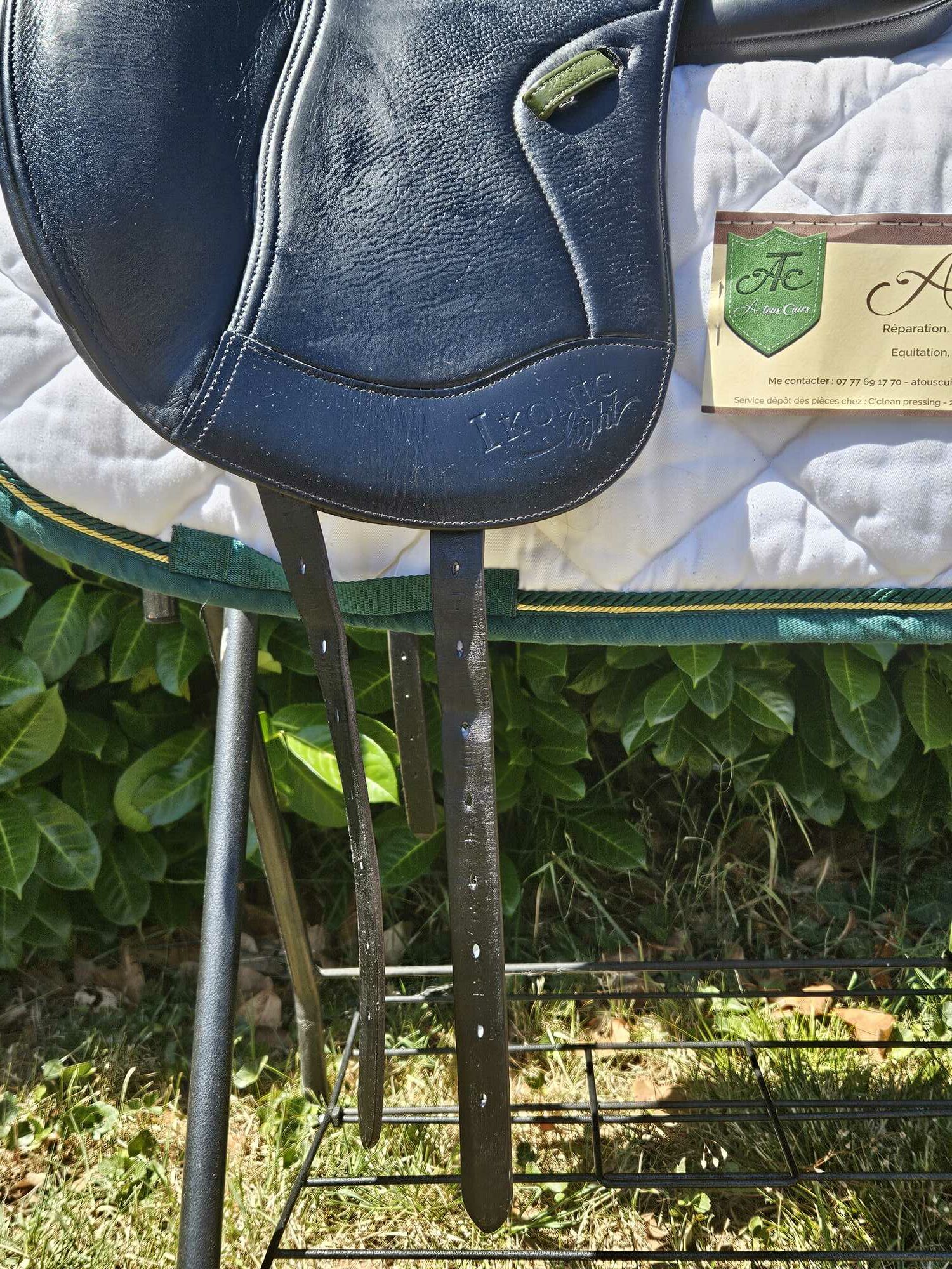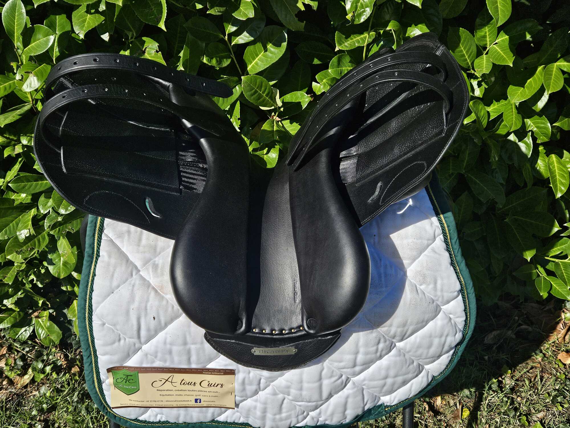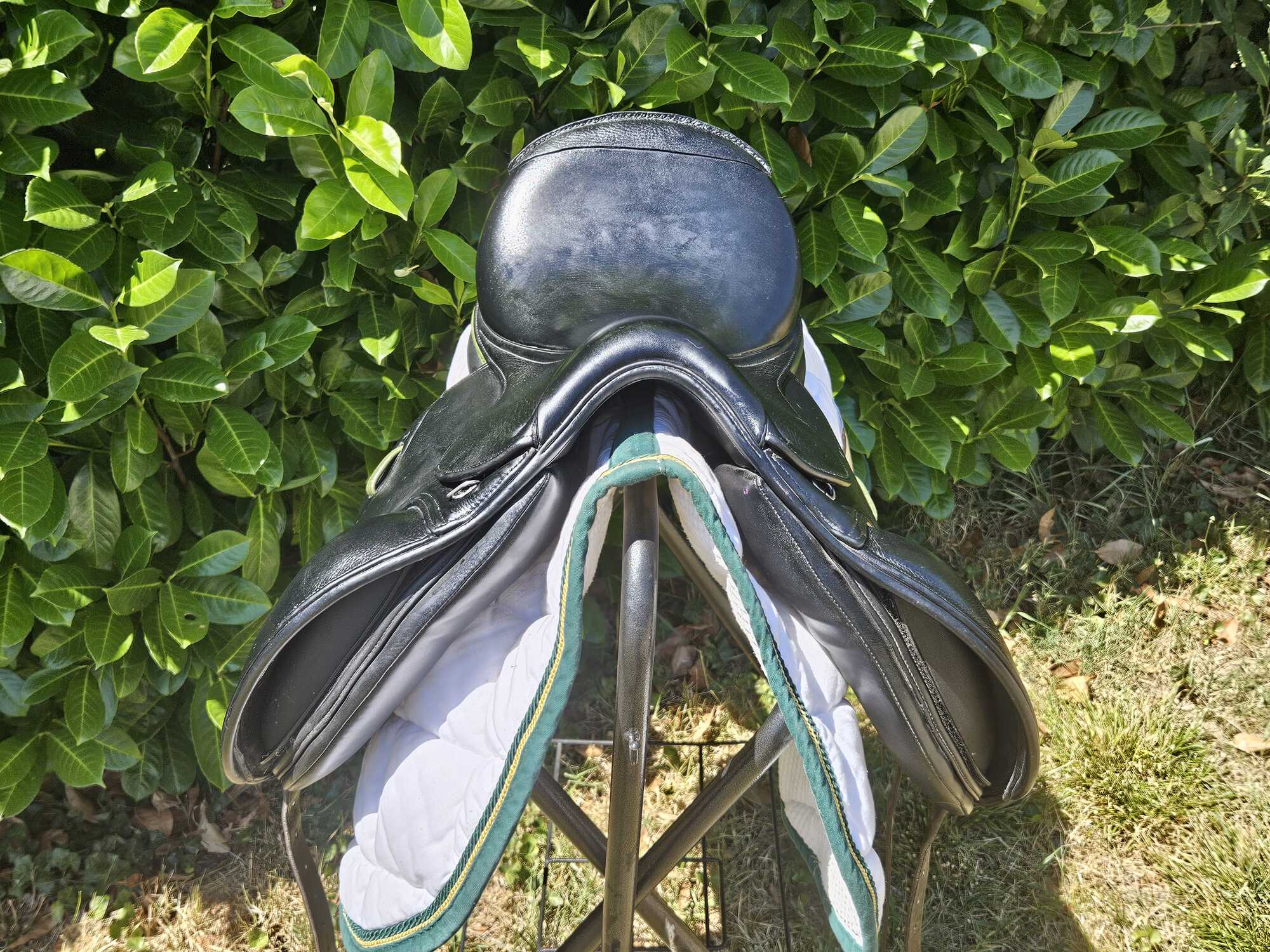 A louer : selle 15 pouces, dressage, noire, ikonic, arcade moyenne, sanglage bas