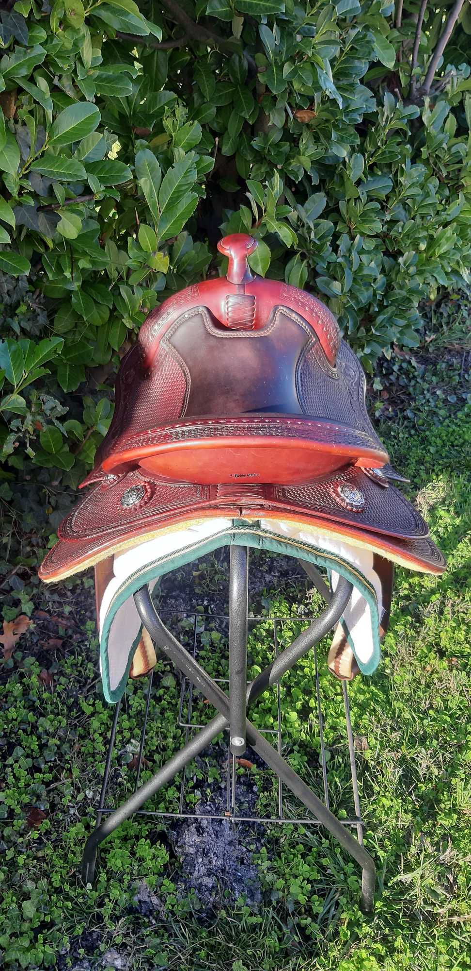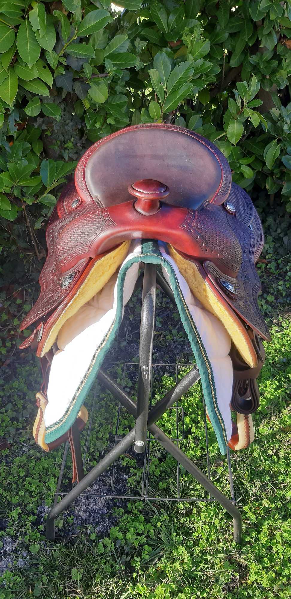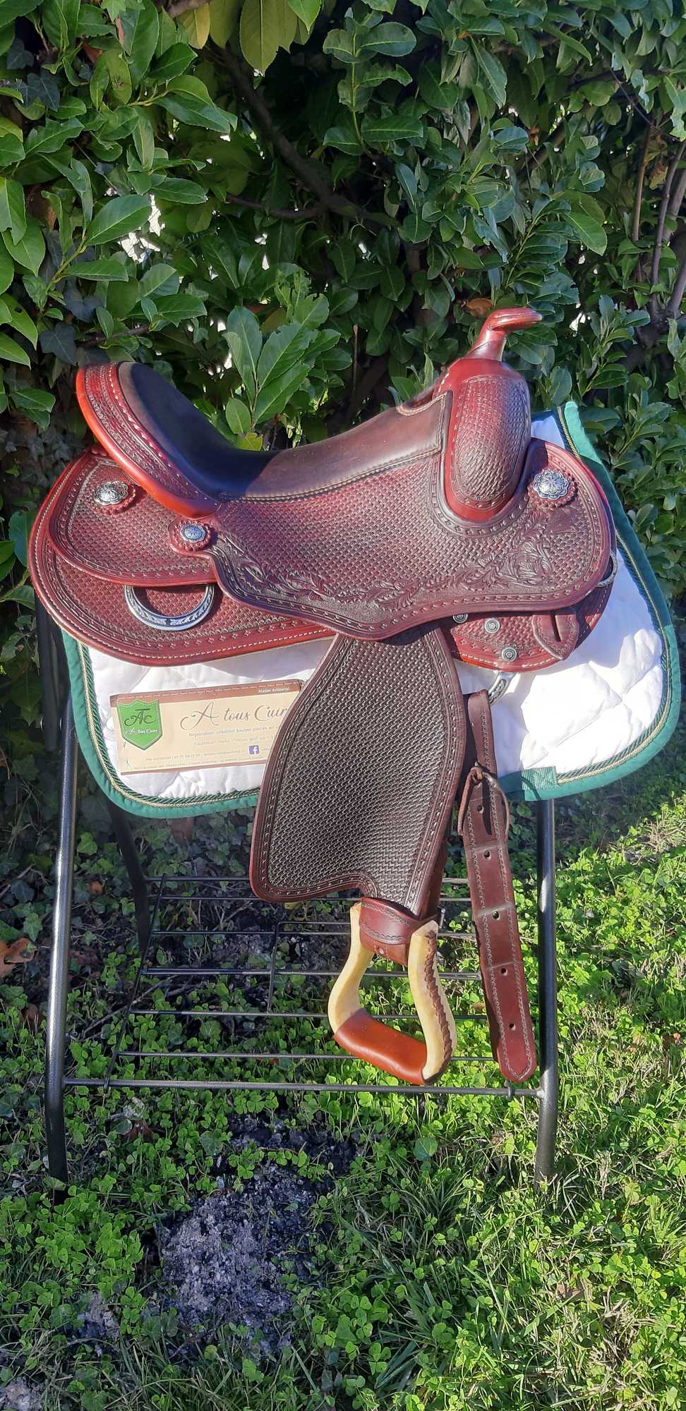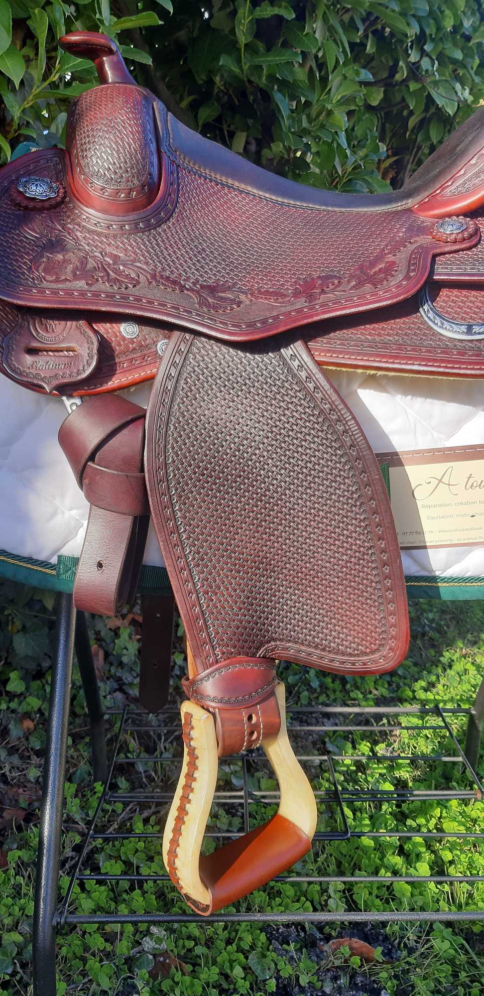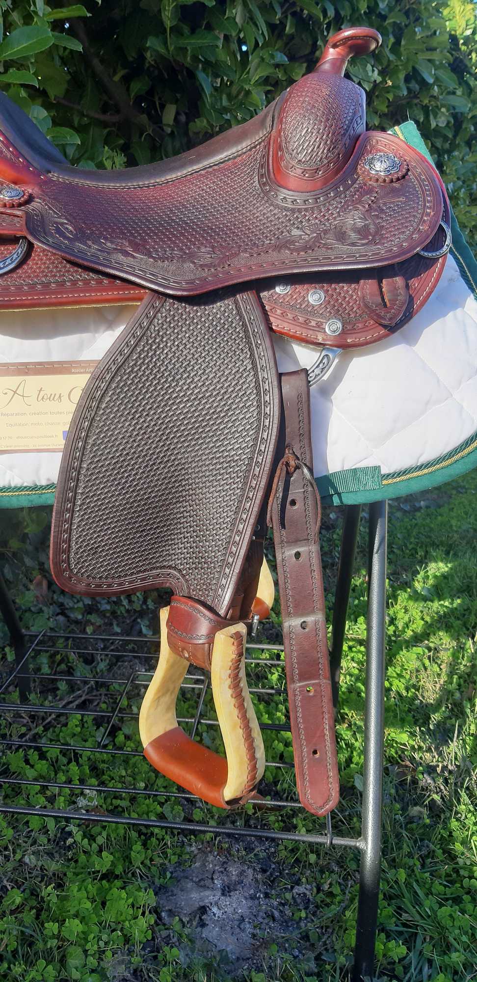 A louer : selle 13,5 pouces, western, marron, Www platinium, arcade moyenne, sanglage normal